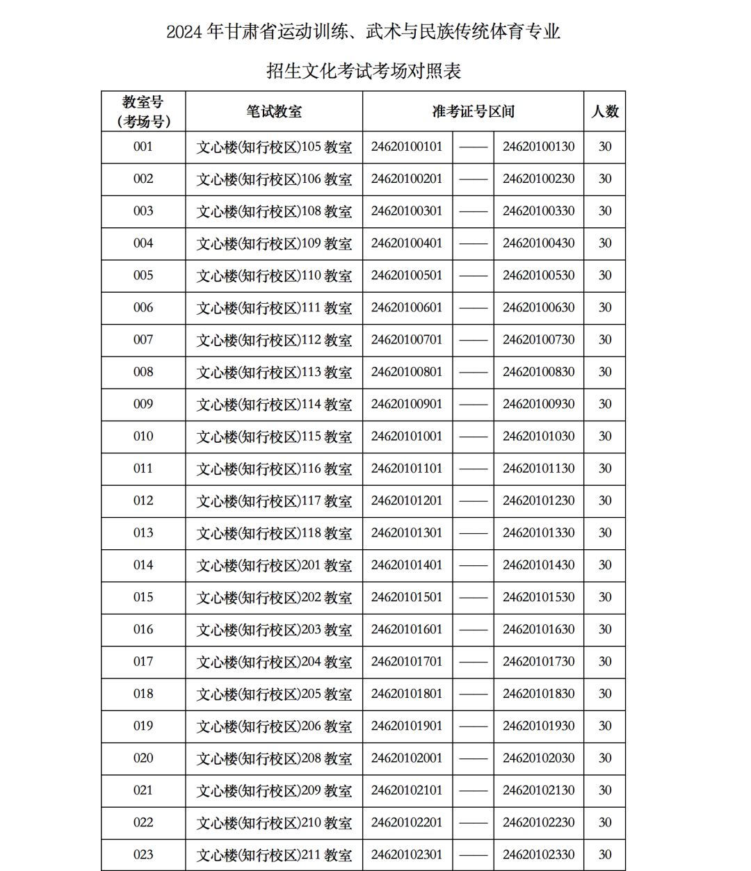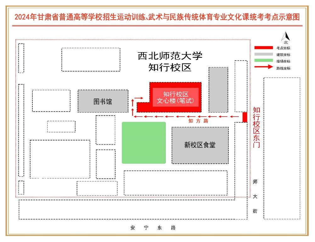 2024年甘肅省普通高校招生運(yùn)動訓(xùn)練、武術(shù)與民族傳統(tǒng)體育專業(yè)文化考試將于3月30日-31日在西北師范大學(xué)知行校區(qū)(蘭州市安寧區(qū)邱家灣37號)進(jìn)行?,F(xiàn)就考試相關(guān)事項(xiàng)告知如下: