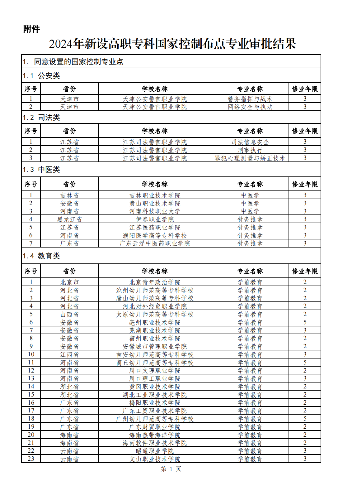 教育部共受理2024年擬新設國家控制布點專業(yè)申請178個,經(jīng)會同公安部、司法部、國家衛(wèi)生健康委、國家中醫(yī)藥管理局等行業(yè)主管部門審核,同意設置專業(yè)點75個,不同意設置專業(yè)點103個,審批結(jié)果可在教育部政務服務管理平臺查詢。審批同意設置的國家控制布點專業(yè)將導入全國職業(yè)院校專業(yè)設置管理與公共信息服務平臺,自2024年起可以招生。平臺網(wǎng)址:http://gz.moe.gov.cn
