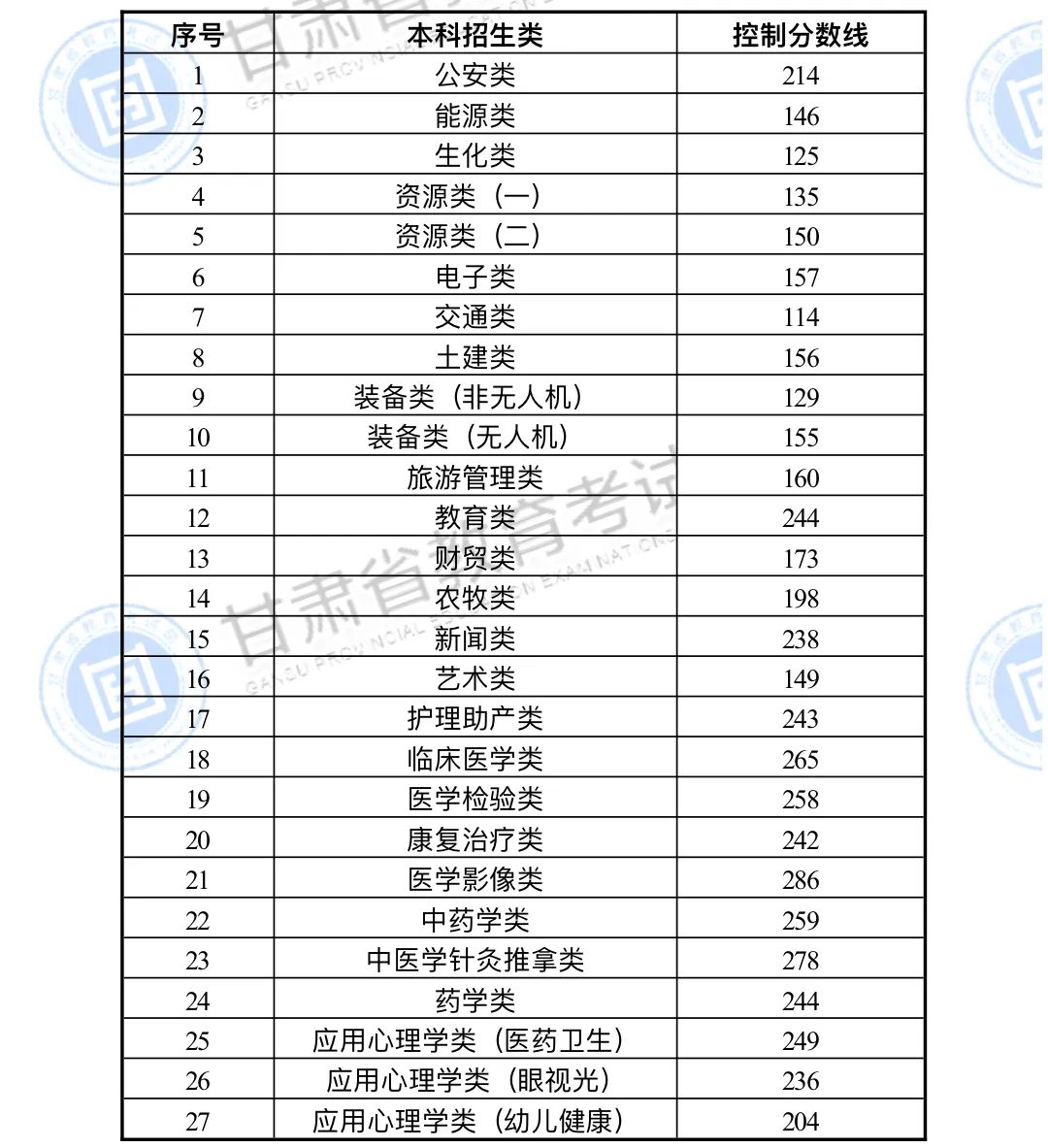 經(jīng)研究審定,現(xiàn)將2024年甘肅省普通高校高職(??疲┥究平y(tǒng)一考試招生錄取控制分?jǐn)?shù)線公布如下: