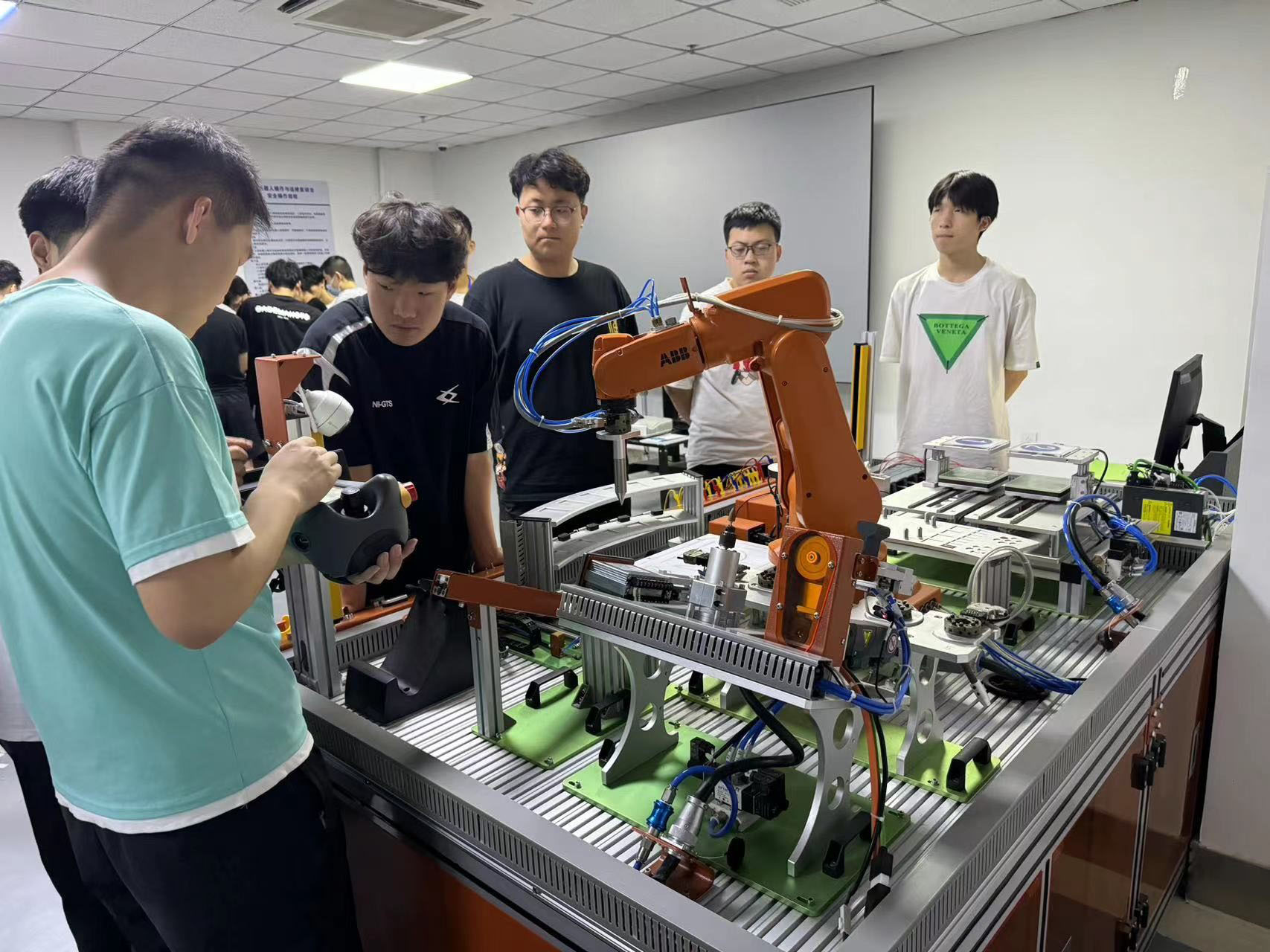 山東科技職業(yè)學(xué)院的學(xué)生正在練習(xí)操作機(jī)械臂的技巧。李丹攝