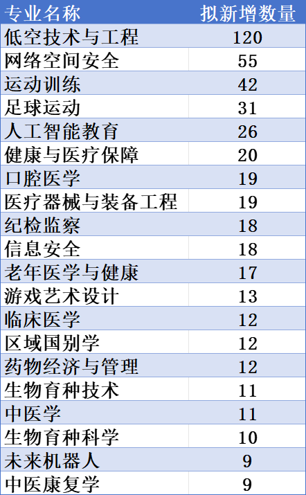 2025年度普通高等學(xué)校擬新增本科專業(yè)數(shù)量前20的專業(yè)名單,數(shù)據(jù)來源于高等教育司。