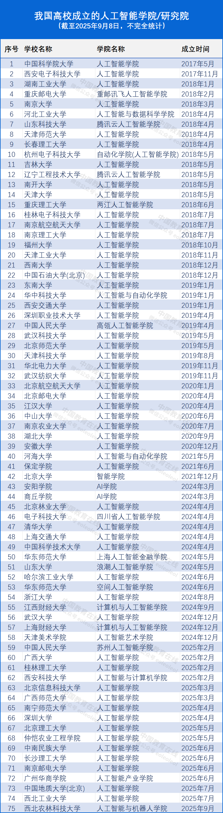 據(jù)不完全統(tǒng)計(jì),截至目前,我國(guó)已有超70所高校成立了人工智能學(xué)院。
