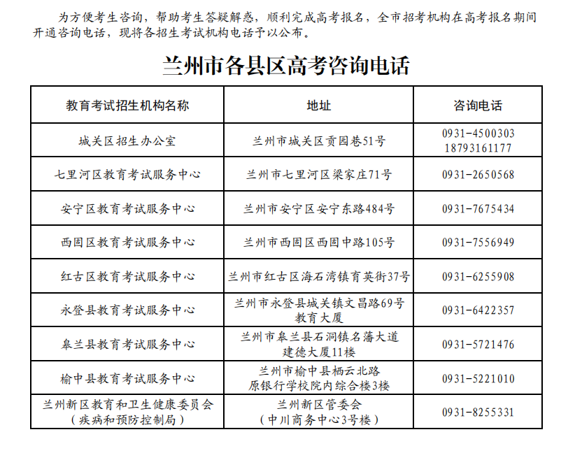 蘭州高考 | 2026年報(bào)名期間咨詢電話