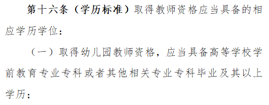 此外還有專業(yè)限制和學(xué)位限制,這表明教師資格證越來越難。前幾年教幼兒園,中專學(xué)歷也可以,現(xiàn)在不行了,至少提高到大專學(xué)歷。而中小學(xué)專科生也不能再考了,起碼也要本科學(xué)歷。