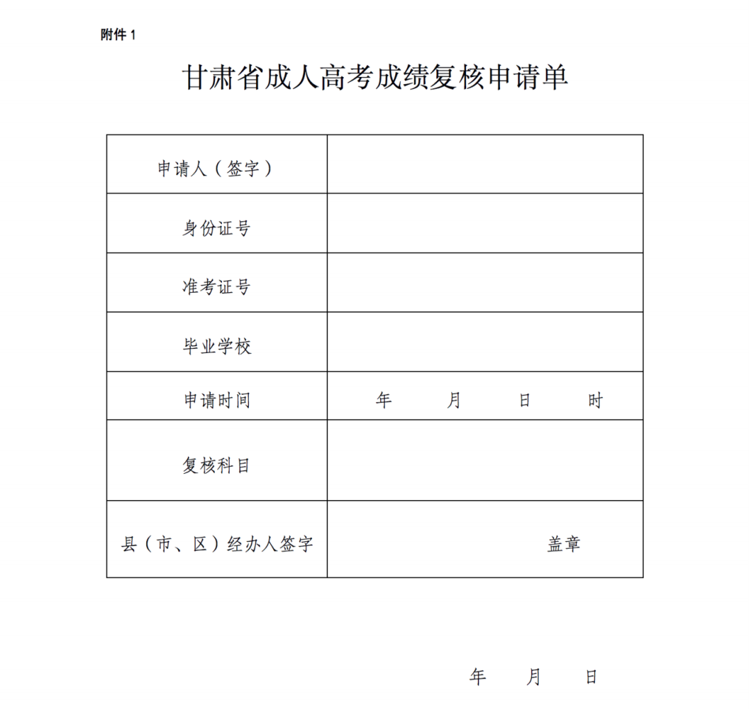二、成績復核。考生若對成績有異議,可在成績公布之后5個工作日內(nèi),攜帶本人有效證件(身份證),到報名所在地(市、州)招生考試機構(gòu)填寫成人高考成績復核申請單(見附件1)提出成績復核申請。