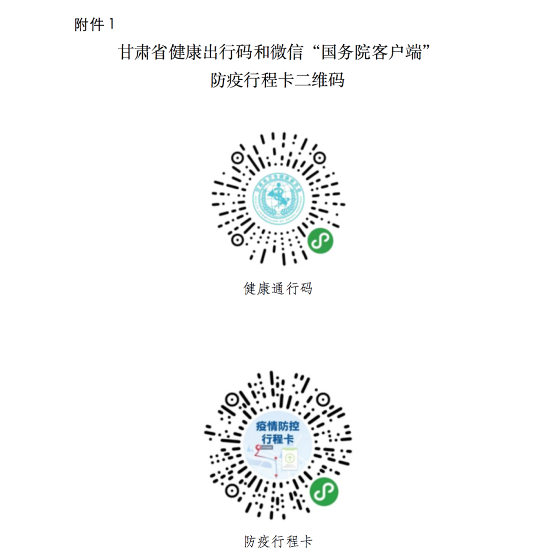 1.“甘肅省健康出行碼”和微信“國務(wù)院客戶端”防疫行程卡二維碼